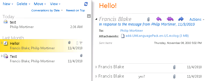 - fpath (optional) – specifies mailbox folder to display starting from the root folder, e.g. projects/2010. Note that when you specify Inbox you might encounter issues because of user’s localization settings, i.e. “Postvak IN” (Dutch) instead of Inbox;