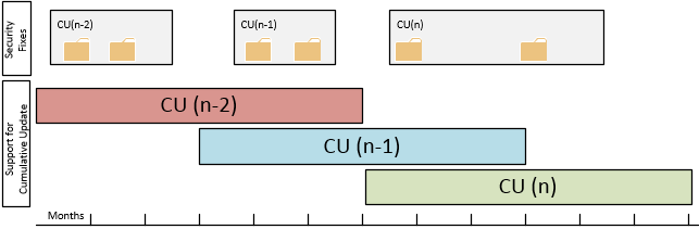 A major change is that Cumulative Updates will be supported for 3 months after the next Cumulative Update is released. Because Cumulative Updates are to be released quarterly, this sets the support-window of a Cumulative Update (or plain, non-Cumulative Update) to 6 months. This may seem long, but I know a lot of companies will have an issue with this window because their test and acceptance periods easily transcends half a year, especially if schema updates are involved (yes, Cumulative Updates can require schema updates). And don’t forget about cases where customers adopted  a building block model where they will need to test that Cumulative Update against their Operating System building block with all the additional components, like Anti-Virus, Backup agents or Management software involved.