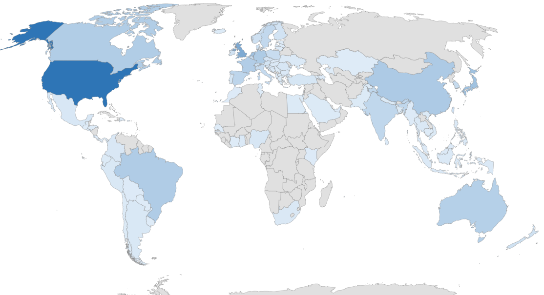 The following chart and table display the awardees per country, plus change percentages compared to July last year. Countries that show a 0 no longer have any published MVPs. This used to be a condensed table, but I have expanded the table and added fun facts such as MVPs per population and area as well, using apicountries.com as a reference.
