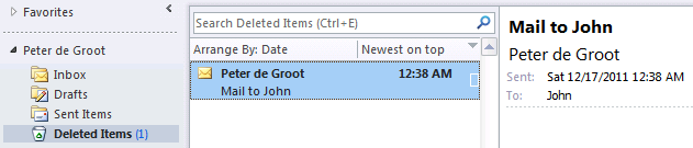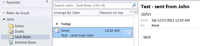 Many people using Outlook access multiple mailboxes, either because the mailbox is shared or they are a delegate (e.g. they have send-as permissions). What many users find confusing is that by default, Outlook will put the copies of all sent messages in the Sent Items folder of the default account. For example, when Peter sends a message as John, users expect Outlook to put the message in the Sent Items of John. Also, when Peter deletes a message from John’s mailbox, it will end up in Peter’s Deleted Items folder.