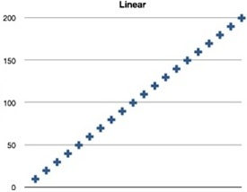 Ideally, scaling up should show a linear pattern, meaning two systems equal can handle twice the load. Scaling out most of the time doesn’t, which makes sense when looking at how computers are designed using shared resources like buses for example.