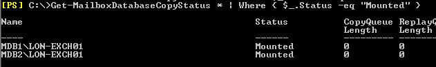 Databases seemed enabled for provisioning. We then checked the status of the active database copies: