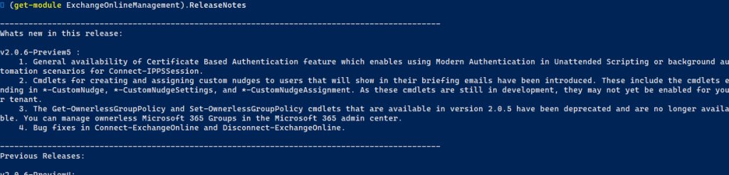 Tip: Did you know you can view the release notes of the installed Exchange Online Management module by inspecting the ReleaseNotes property, e.g.
